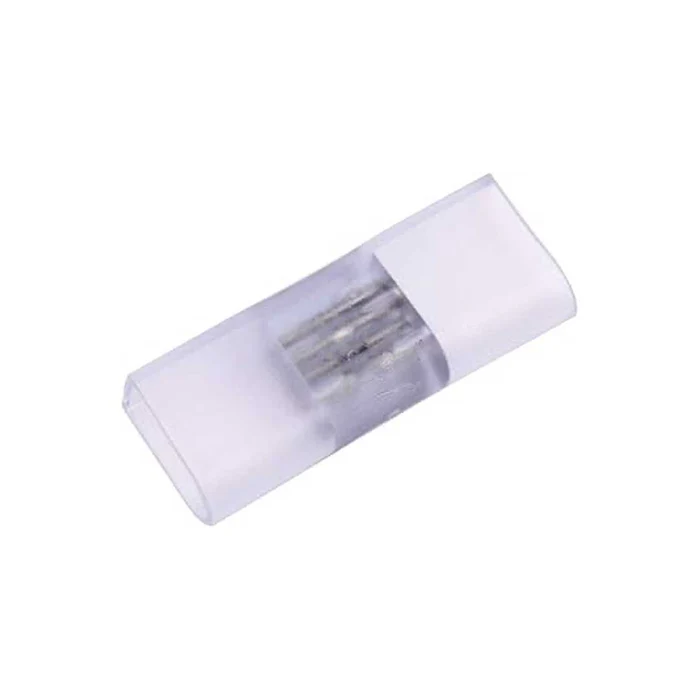 RGB LED strip light connector designed for quick and secure joining of multi-color strip light sections. The transparent compact design ensures a clean installation while maintaining stable electrical contact for smooth RGB color transitions.